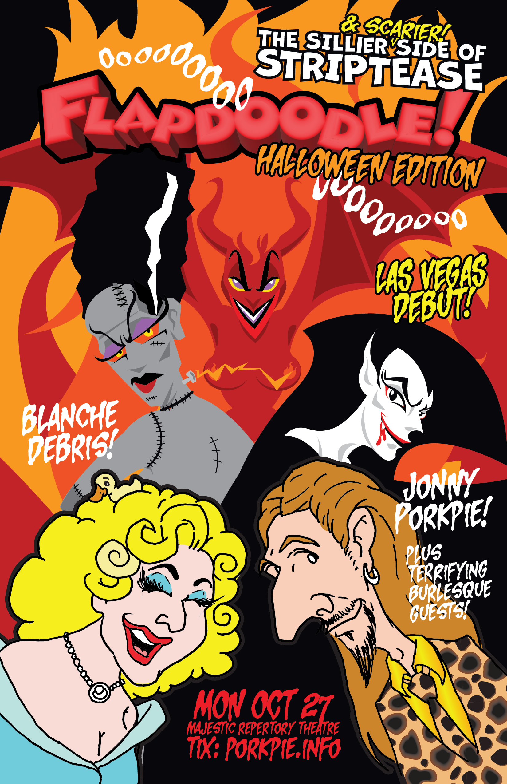 Glamorous ghouls, titillating terrors, and flirtatious fiends haunt the stage of a diabolical doctor’s Evil Laboratory and Cabaret Space, where the sinister scientist, their aberrant assistant, and a vicious intern conduct erotic experiments in striptease to reawaken a dearly departed love from the flaming depths of the Nether Regions.